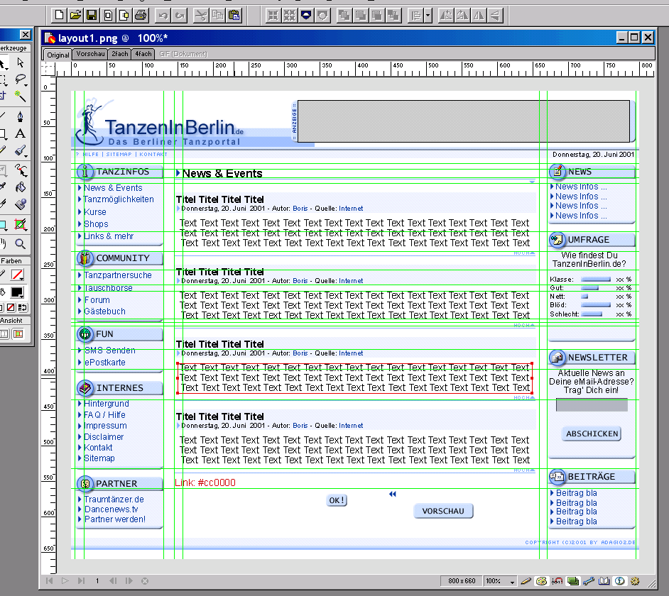 gut aus. Ich entschied, meinem Tanzportal ein neues Gesicht zu verpassen - das